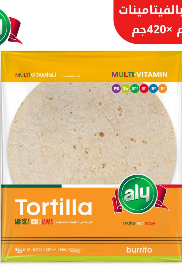 Tortilla bread with vitamin contains vitamin B complex such as: pyridoxine, niacin, and thiamine, and these vitamins are important elements that enhance the cellular metabolism of the human body. It is considered one of the foods that contain a high percentage of carbohydrates, which makes it a source of energy without causing weight gain.