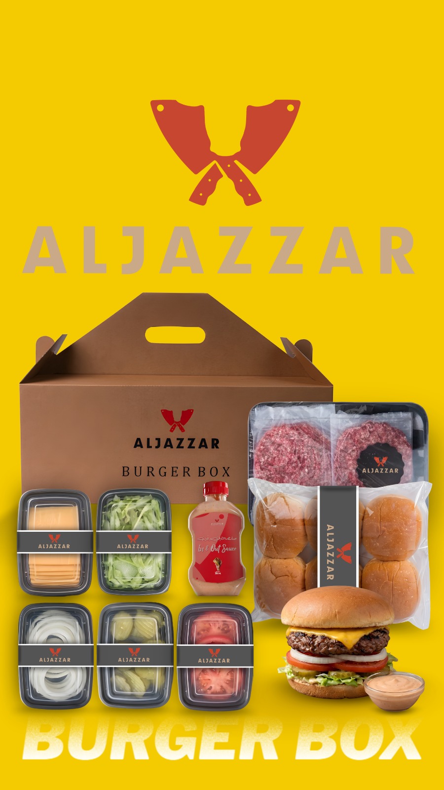 12 angus burger patties, cheese slices, lettuce, tomato, onion, pickles, aljazzar special sauce.