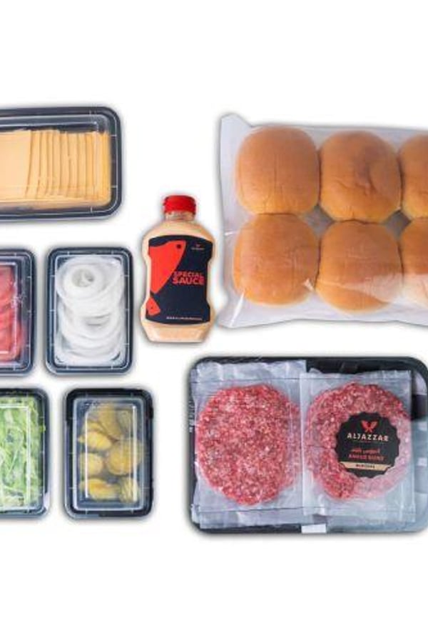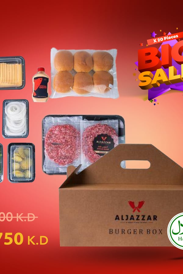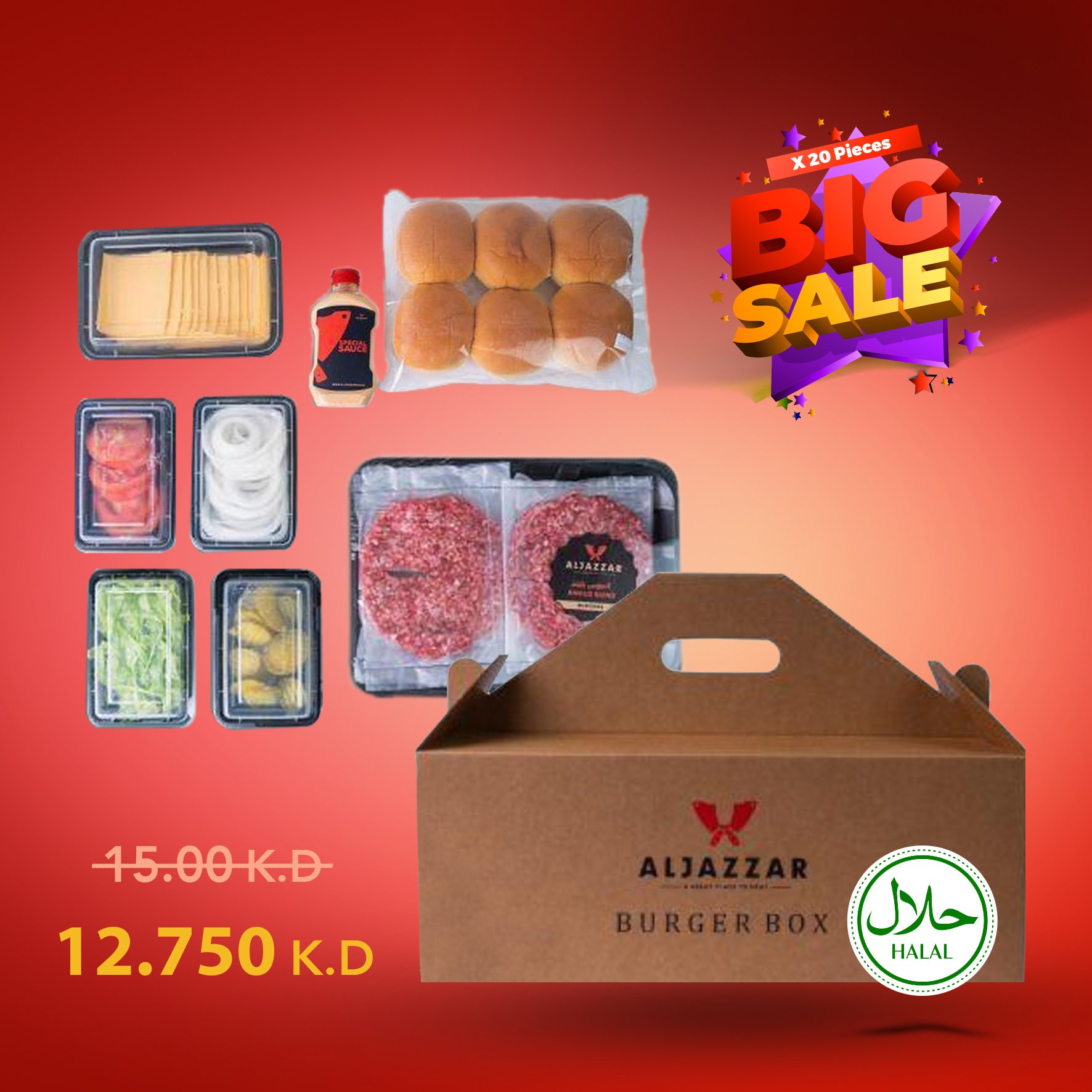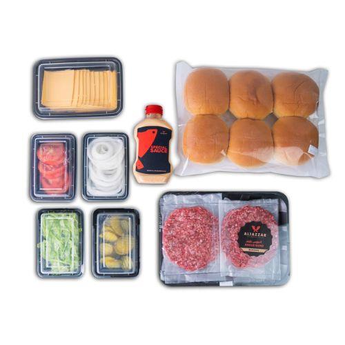 12 angus burger patties, cheese slices, lettuce, tomato, onion, pickles, aljazzar special sauce.