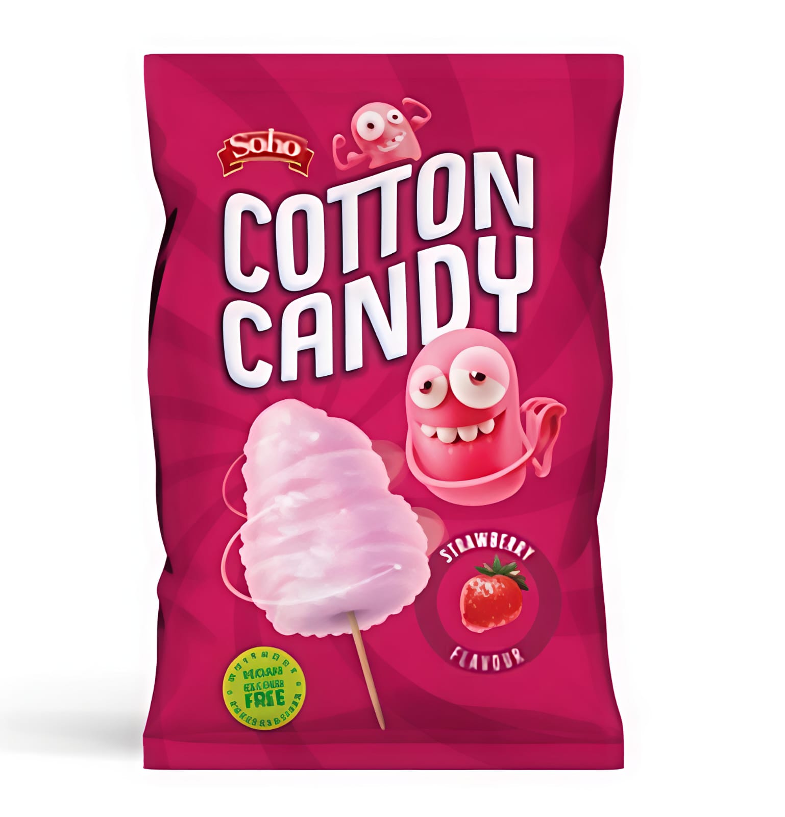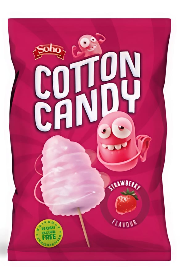 Strawberry-flavored cotton candy with a light, fluffy texture that melts in your mouth. A sweet and refreshing taste that brings back joyful childhood memories. Perfect for parties and special moments.