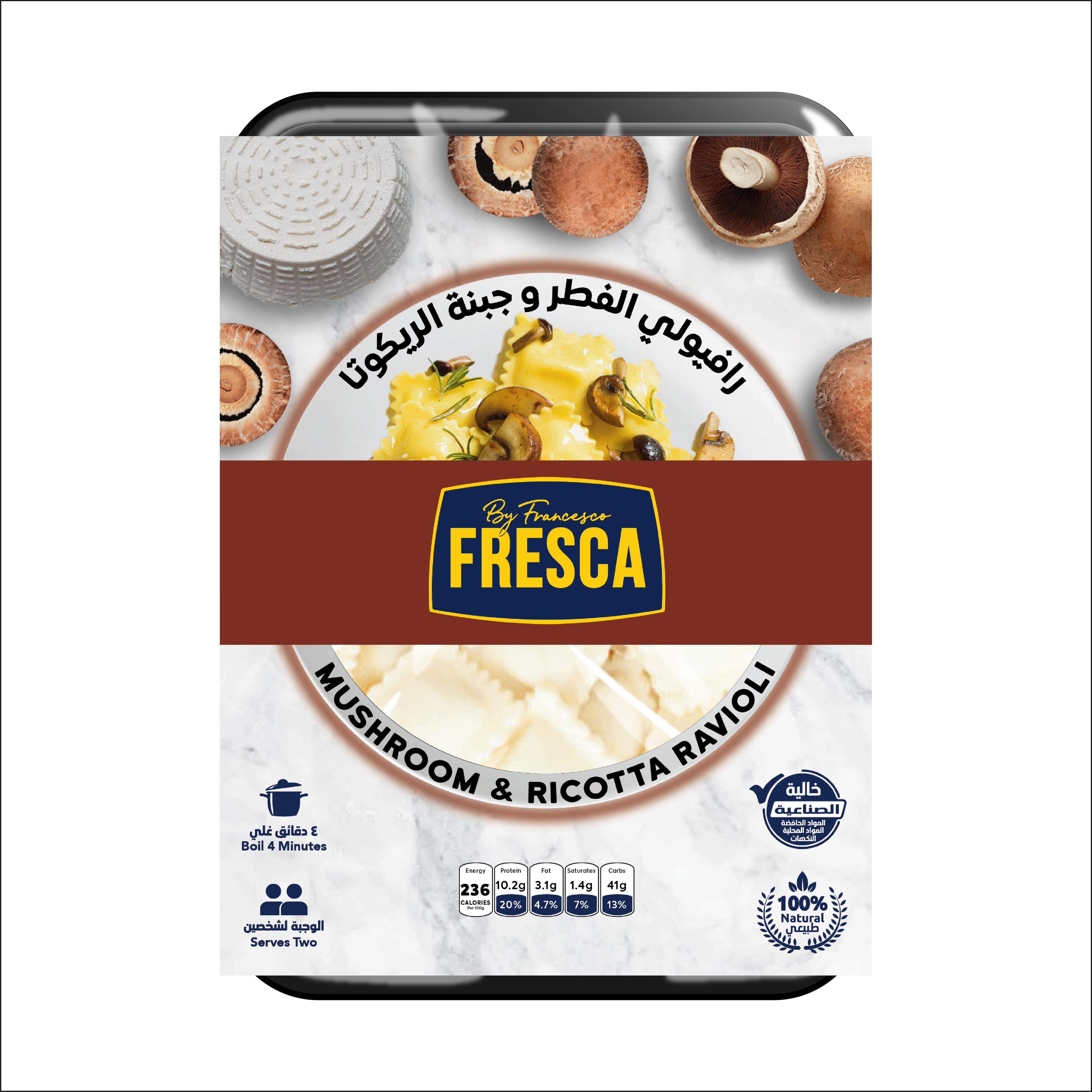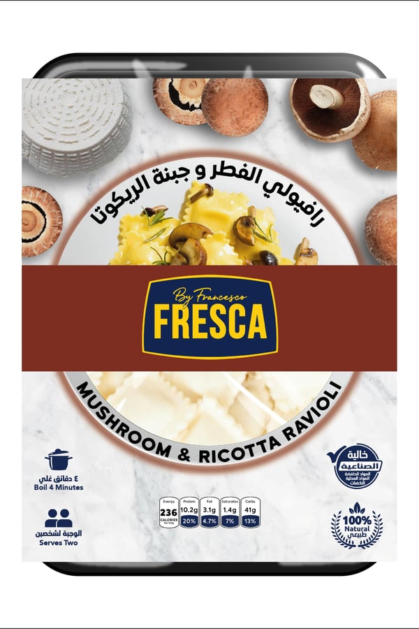 Half cooked fresh ravioli filled with Mushroom and Ricotta Cheese filling