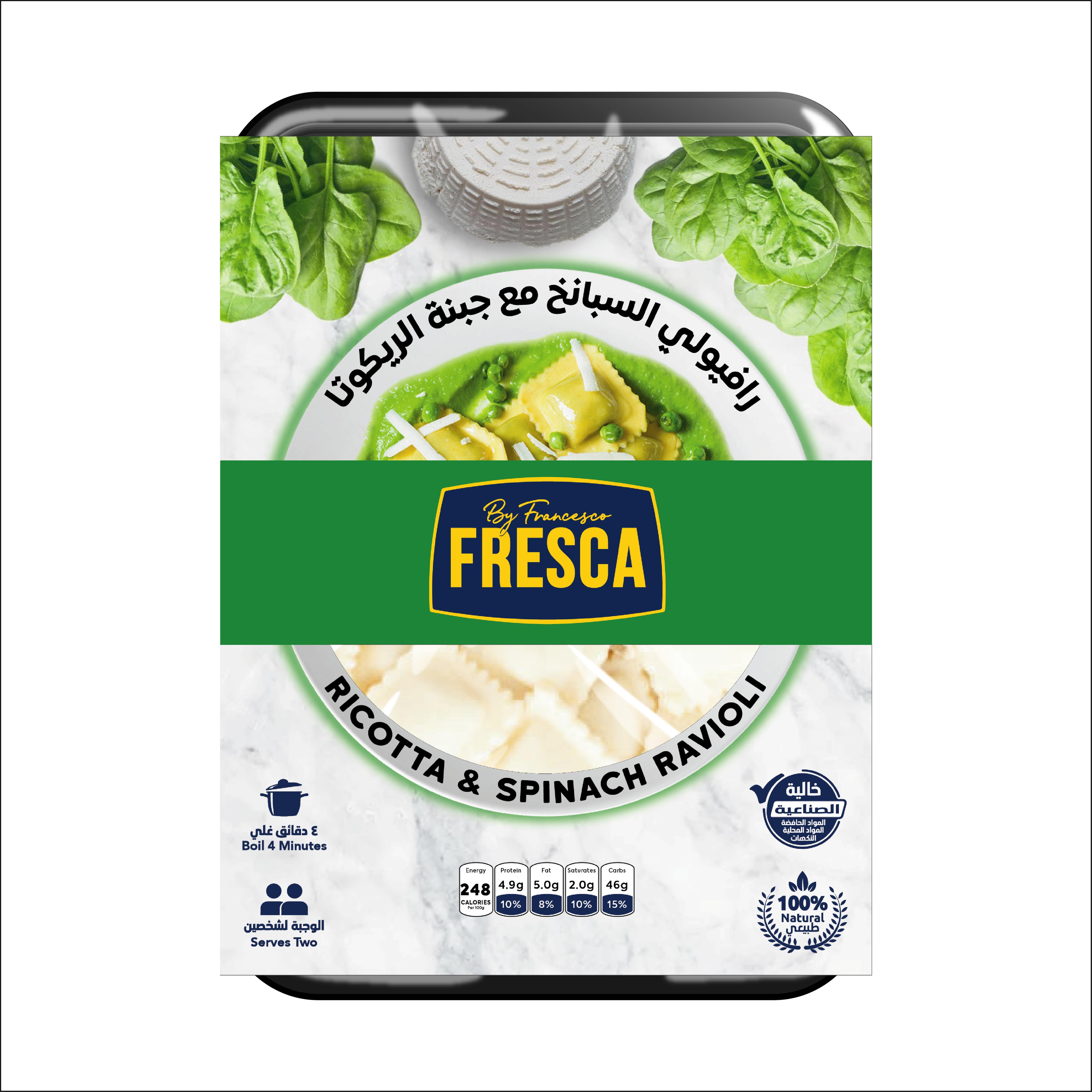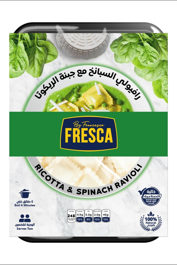 Half cooked fresh ravioli filled with Ricotta Cheese and spinach filling