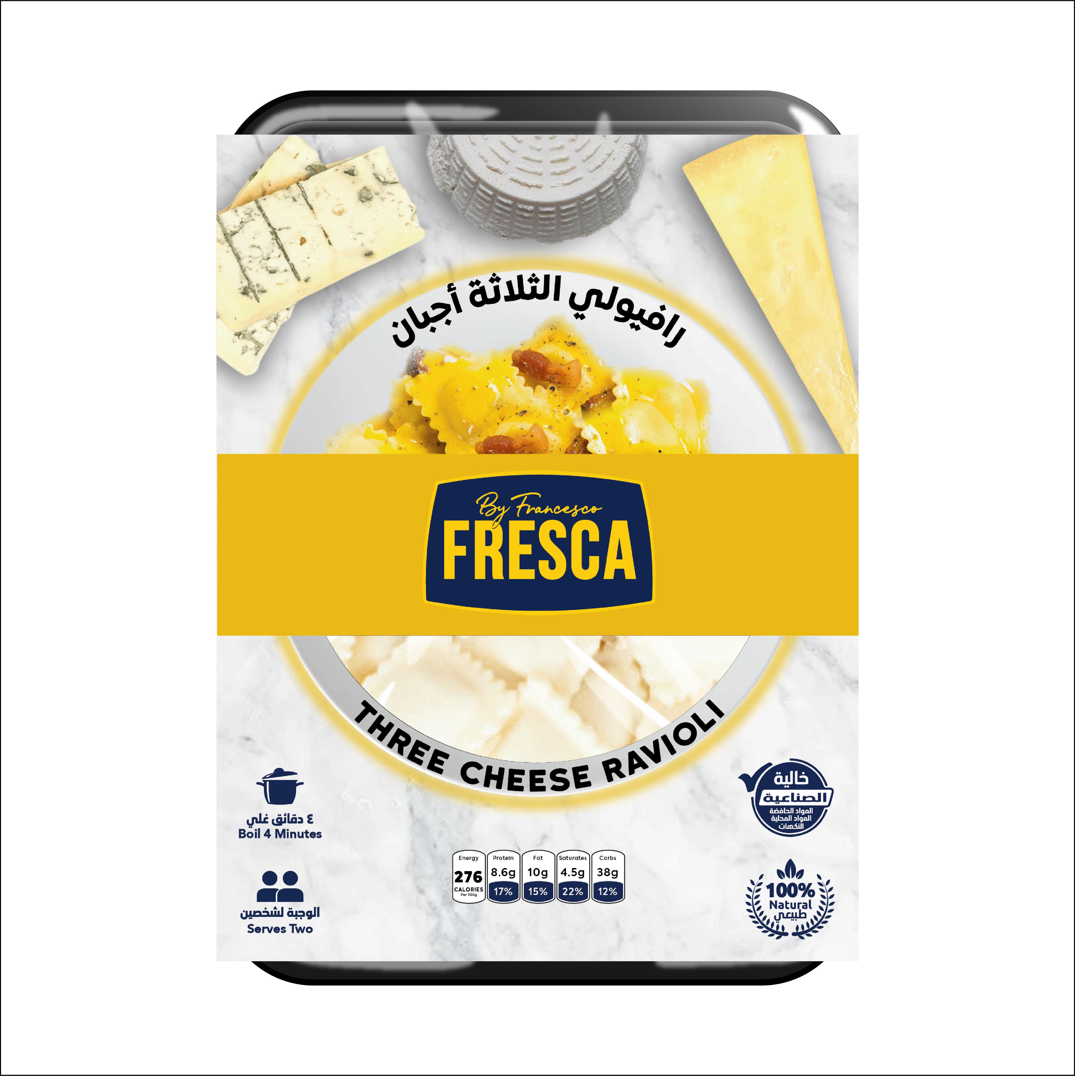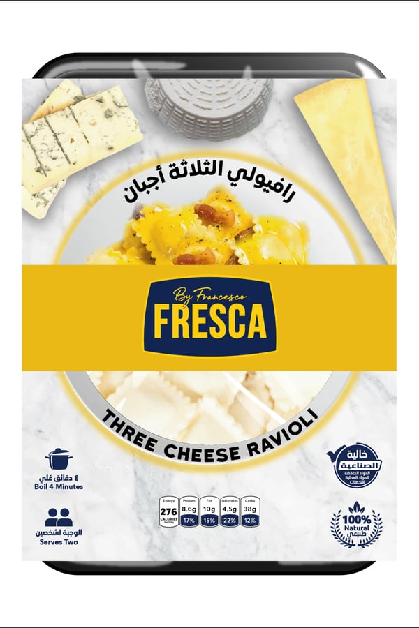 Half cooked fresh ravioli filled with three types of Italian cheese filling