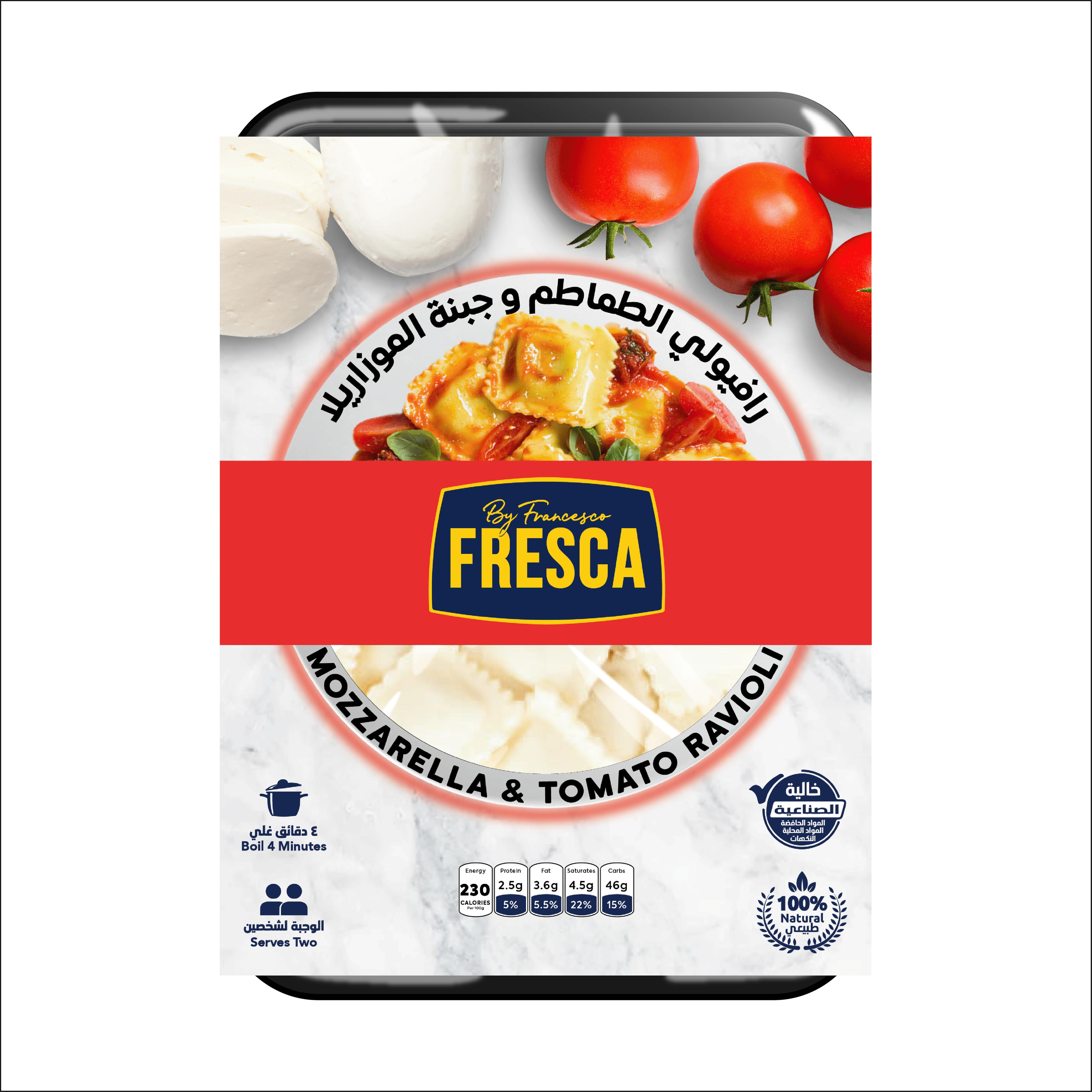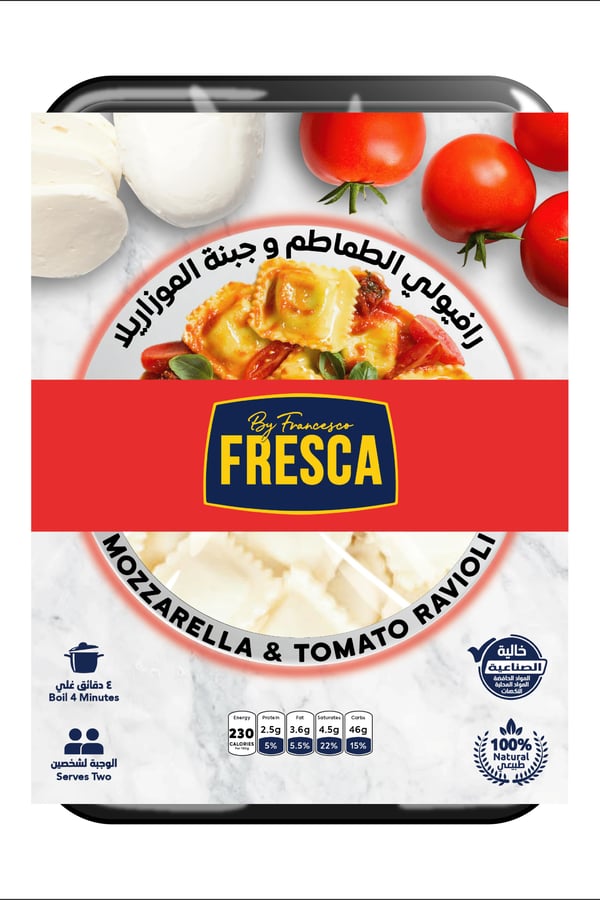 Half cooked fresh ravioli filled with mozzarella and tomato filling