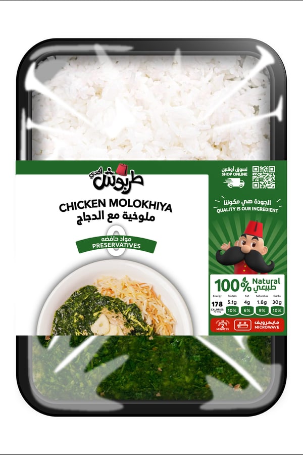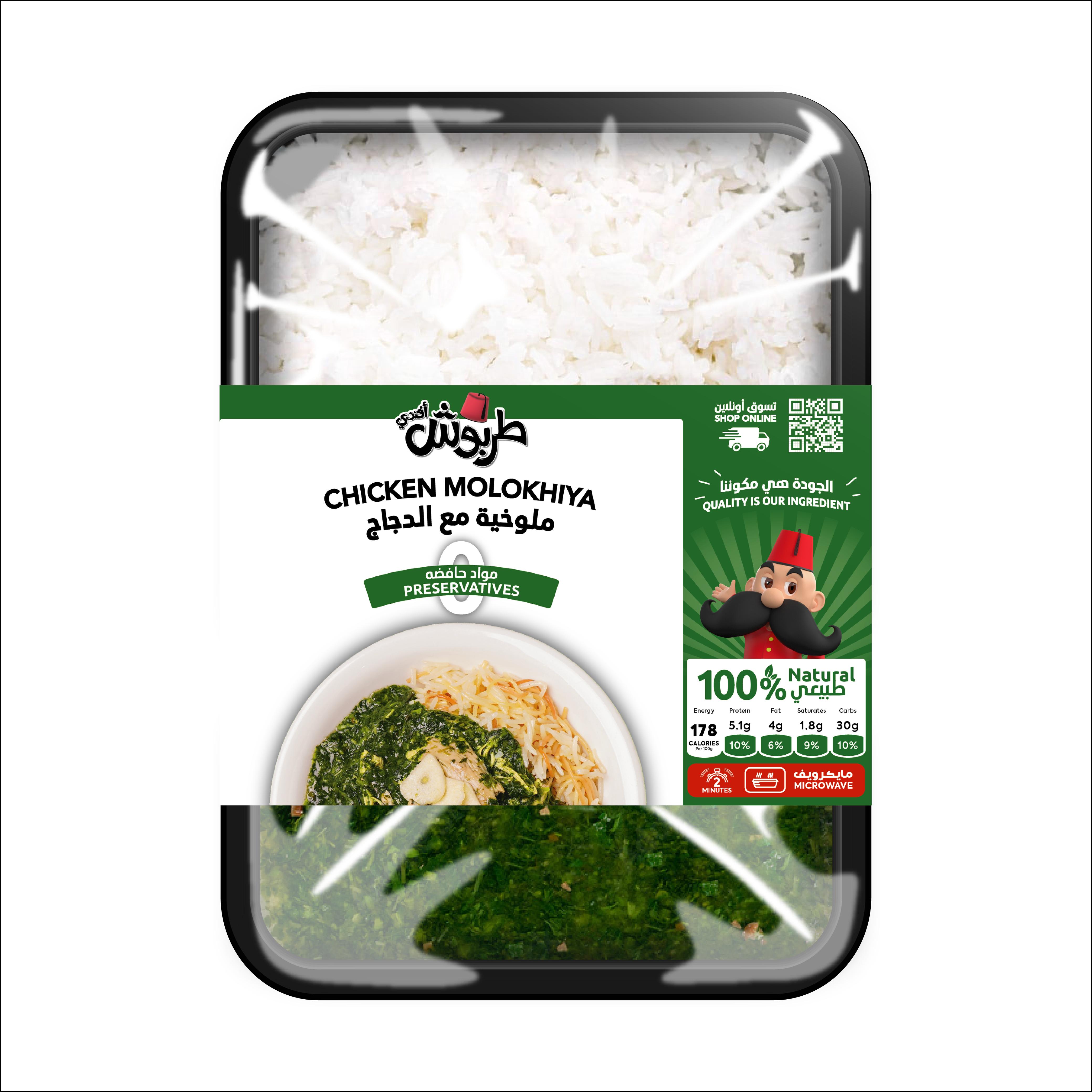 Molokhiya is a traditional dish with shredded tender chicken in a lemony broth and served over with rice - 350 gm